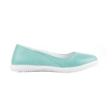 Light, airy women’s ballet flats. The model is made of perforated genuine leather of turquoise and white colors. A gentle romantic style is an original catch for fashionmongers, and the colors will create an atmosphere of good mood. The lightweight and flexible outsole provides stability and comfort for the foot. This model is quite popular and makes many customers happier.